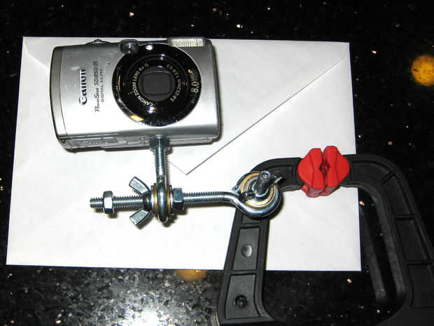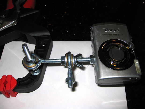 construir un cámara sencilla de montaje para mi motocicleta usando solamente los siguientes componentes:1 x 3/4" PVC Tee1 x 3/4" PVC roscado tapón2 x gomas1 x 1/4" perno2 x abrazaderas para tubos pequeñosEpoxi