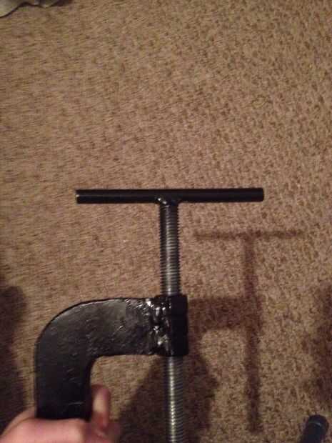Ahora soldar una varilla en el extremo de la varilla roscada para apretar y aflojar la abrazadera con la.