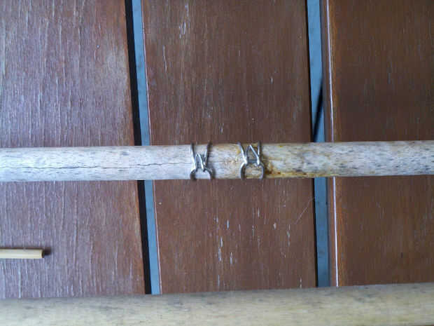 • Una de las clavijas cruzadas en el estante del lavadero se rompió en una fractura astillada largo, diagonal. En lugar de tener que reemplazar el pasador, usé un pegamento de madera un par de abrazaderas para cables, que la articulación fue hacia abajo y viste muy bien para no prenderse de colgar ropa y la rejilla estaba de vuelta en acción en menos de 10 minutos.