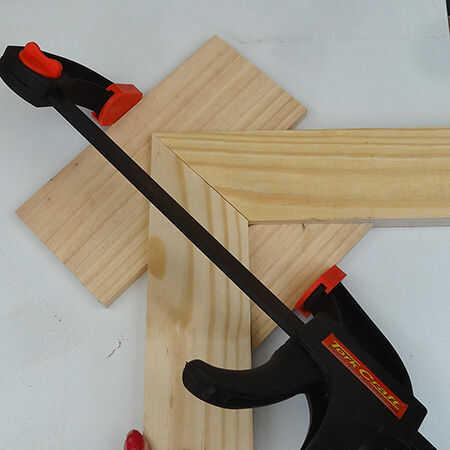 Este método de fijación con abrazadera una esquina sólo requiere una sola abrazadera rápida que puede ser removida una vez que el pegamento se haya secado y la esquina se asegura firmemente juntos.