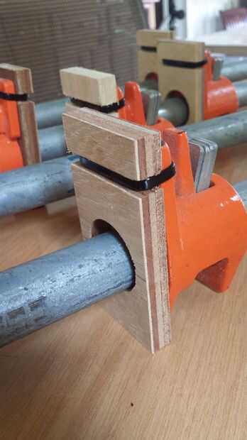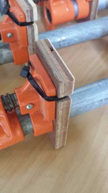 Fácil Instructable 1-paso: esta es una solución muy simple relleno para abrazaderas para tubos de 3/4" que no requiere ninguna perforación en las abrazaderas y no pegado. Los cojines doblarse como soportes para las pinzas de pipa también. Se puede hacer en pocos minutos con trozos de madera contrachapada de 1/2" y se asegura con bridas. El surco se realiza en la mesa de fresadora y algunos milímetros de profundidad.