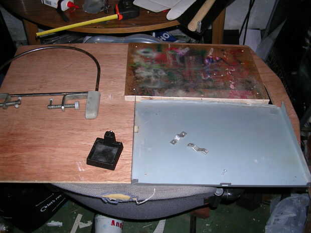 Un pedazo de tablero de bloque de un viejo tablero aerografía que acaba de ocurrir a.