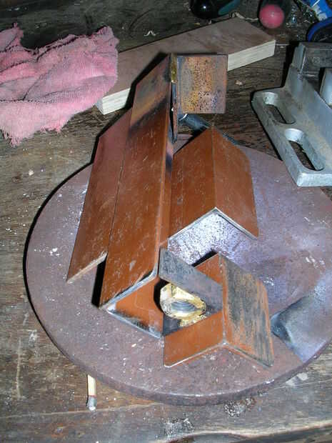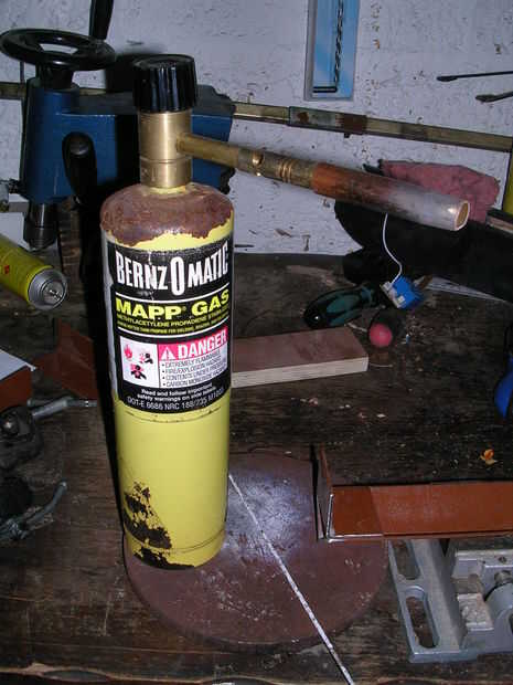 Tengo un soplete de gas Mapp y deciden probar y soldar la abrazadera juntos durante un par de razones, quería ver si el ángulo es lo suficientemente ligero como para ser soldadas por mi antorcha y en segundo lugar disfrutar de unión metal junto con fuego y es una buena excusa para dejar el interior pyro hacia fuera en forma controlada.