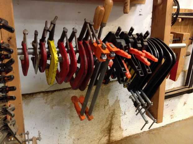 Apenas he empezado a reorganizar mi tienda, y de esta re-org es encontrar un lugar para mi que no es un montón en el piso, o una pila en el Banco, abrazaderas o una pila... usted consigue la idea.Generalmente uso dos tipos de abrazaderas:Bessey K cue