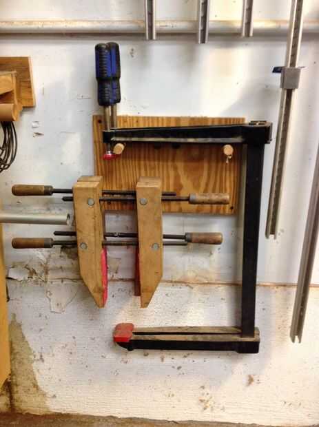 Rack de abrazadera de mandíbula profundo. Solo pienso en tener dos de estas grandes mordazas profundas tan colgándolos obras hacia los lados. Llené sus mandíbulas con las abrazaderas de madera de la mandíbula.