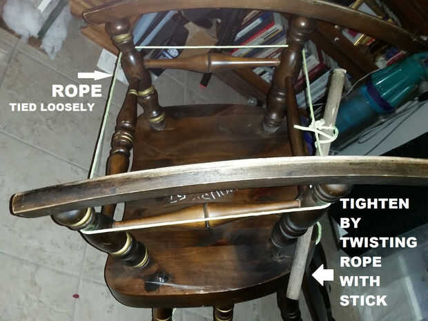 El punto de todo que esto es que, antes de gastar una pequeña fortuna en una amplia variedad de abrazaderas especializadas, usted debe pensar lo que está tratando de sostener y cómo se puede hacer. A menudo estas abrazaderas especializadas utilizará raramente - a veces sólo una o dos veces! Si usted está tratando de mantener una silla Junta mientras re-está pegado un peldaño suelto, una buena pinza puede ser un pedazo de tubería de caucho quirúrgico - especie de una gran banda elástica tubular - una larga cuerda del amortiguador auxiliar, o un trozo de cuerda o paracord atado alrededor de él con un palo para torcedura apretada. Yo he uso todos estos métodos.