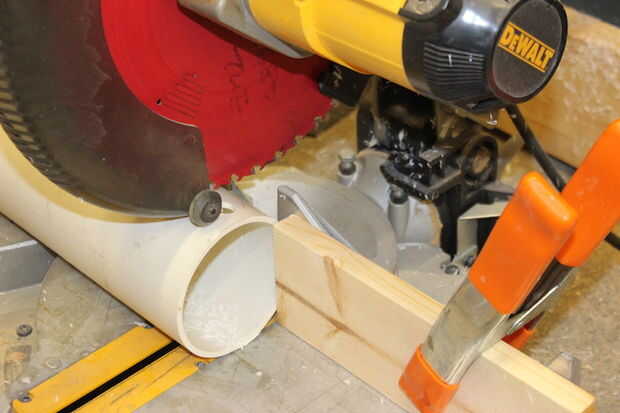 Es importante cortar la tubería en longitudes de 1.5" antes de que usted corte las abrazaderas abiertas. Instalación de una parada en el lado de corte de la Sierra de espacio perfectamente sus anillos en la longitud deseada. Ellos tienen todas la misma longitud exacta es un bonito detalle cuando se anidan las abrazaderas más adelante.