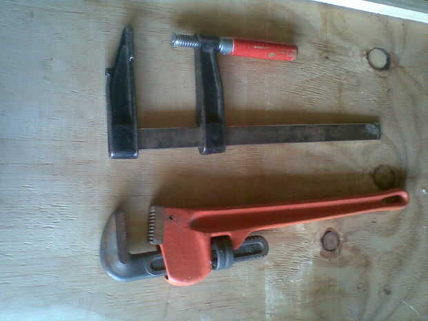 > llave para tubos plomero (suficientemente grande como para abarcar sus bordes)