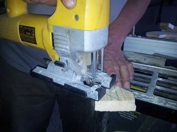 Este proceso es bastante simple. Para el interior ángulo, vas a necesitar hacer un agujero en cada esquina para permitir su rompecabezas hacer la vuelta, pero todo se sigue las líneas para obtener su forma de 'C'. Por seguridad, debe ajustar la placa y corte un extremo a la vez. Ahora honestamente, empecé así, pero era molesto pinzamiento y re-afianzar y tuve limitaciones de tiempo, así que a mano alzada solo corte, sin embargo no recomiendo hacer eso.