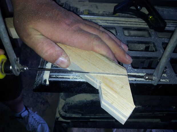 Luego usé mi sierra de marquetería para cortar de un lado de la fractura, teniendo en cuenta que, como una bisagra debe cortar del lado opuesto a casarse hasta.
