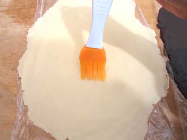 Preparar un huevo blanco y pincel en el rectángulo blanco. Es necesaria para "unir" los 2 rectángulos.