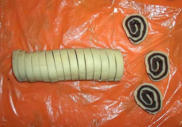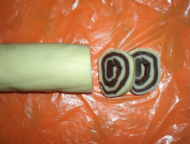 Después de una hora, el rollo de la nevera y cortar aproximadamente 1 cm (0,39 pulgadas) rodajas gruesas con un cuchillo. Habrá sus cookies.