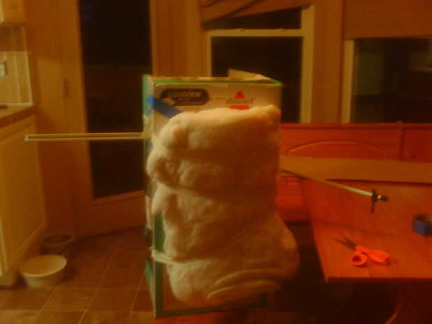 no demasiadas fotos para este paso, pero usted tienen que Hágale un agujero con sus tijeras y meter luego en los brazos luego con cinta adhesiva hacia arriba como así. Esto hará que sólo piden un abrazo.