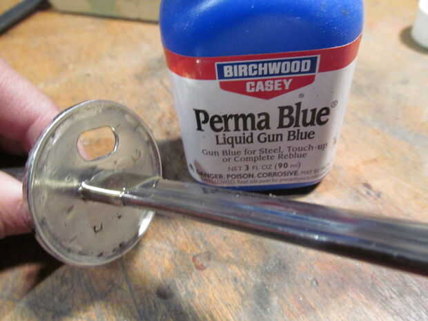 Alrededor de este punto corte un agujero en el protector y pavonado de armas para ennegrecer el metal.