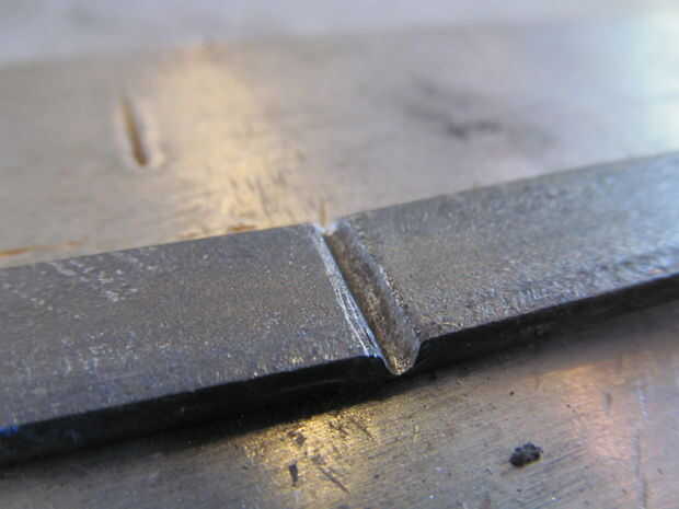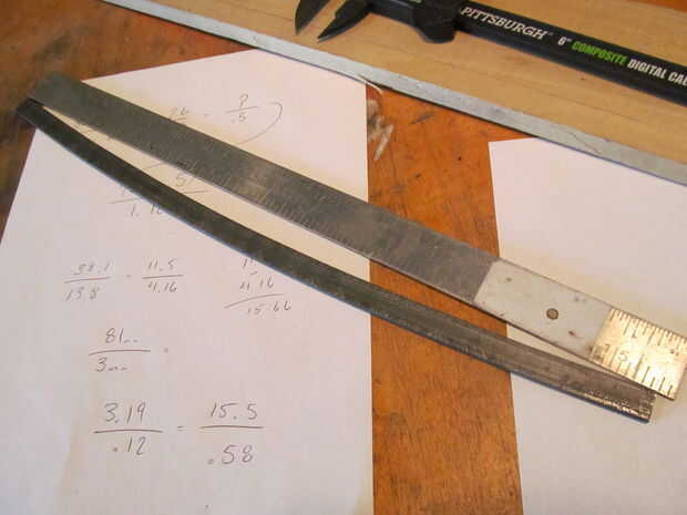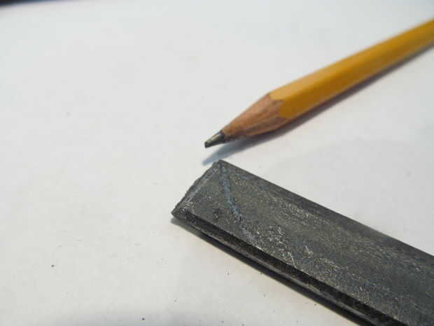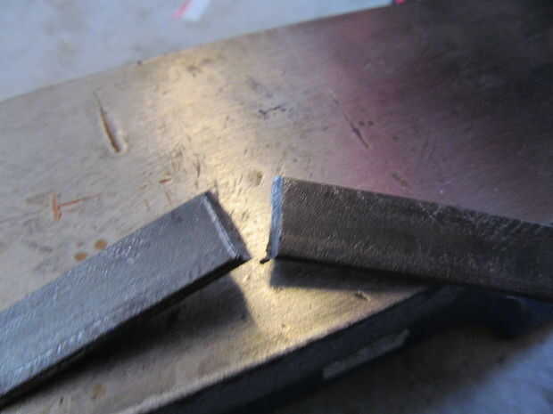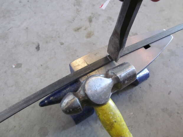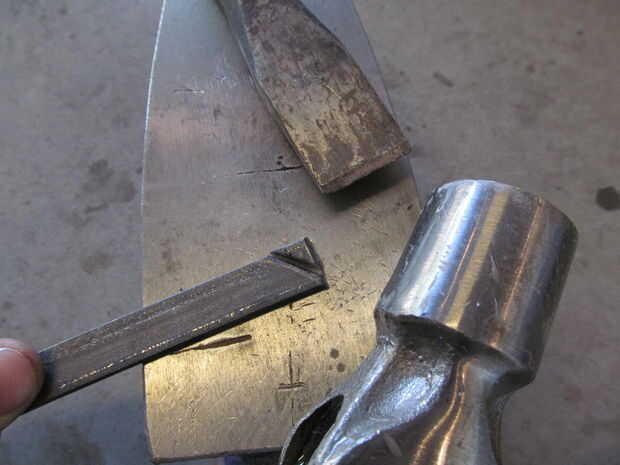 Después de establecerse en una longitud de 16" utilicé un cincel a la parte de la barra. Después bruto había bosquejado la punta de la hoja y había separado fuera demasiado.