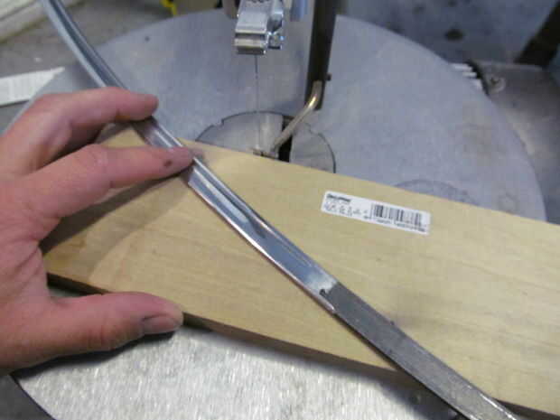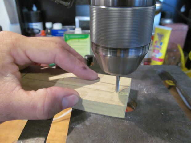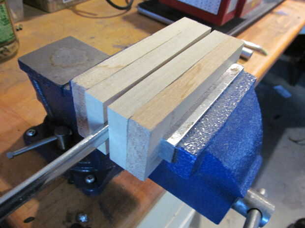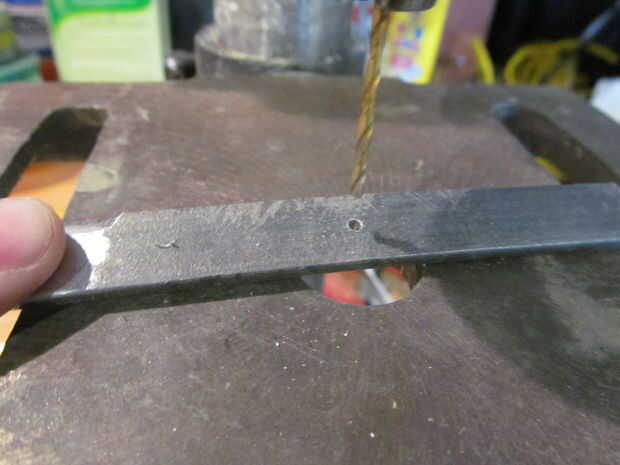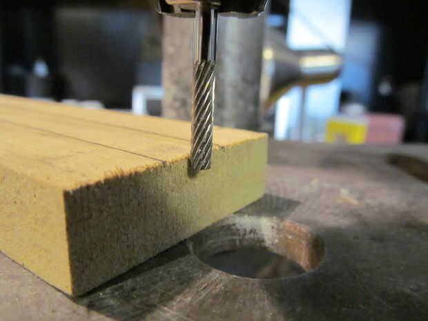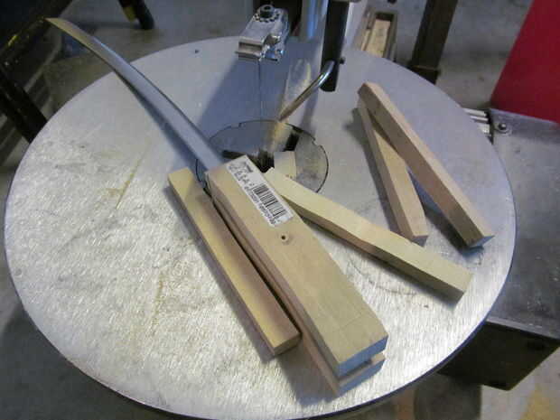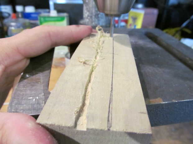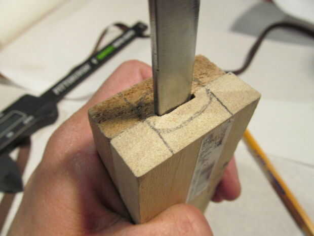 Para marcar donde necesitaba la ruta hacia fuera de la manija apreto la barra en la madera utilizando el tornillo de banco. Entonces solía un poco estriado ruta hacia fuera de la madera hasta que la barra de ajuste. Usé una sierra para retirar el exceso de madera. Ahora es cuando taladré un agujero para el pasador de retención.