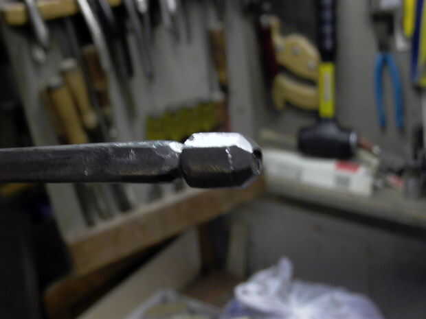 * Girar 45° martillo hasta plana y gire 90 º y repita hasta cuatro lados planos intermedios que se han logrado los cuatro originales.