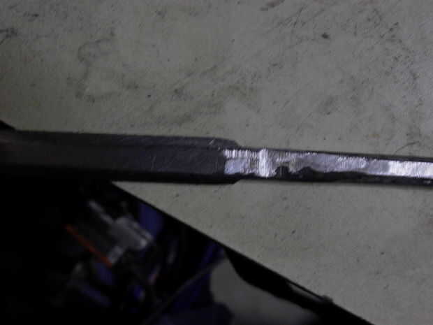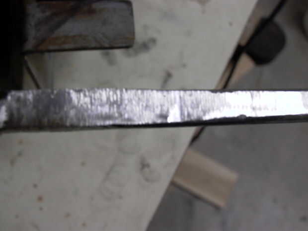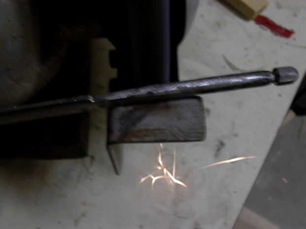 * (ver primera imagen) Utilice la amoladora para el hombro de la espiga en ambos lados de la hoja de la forma.