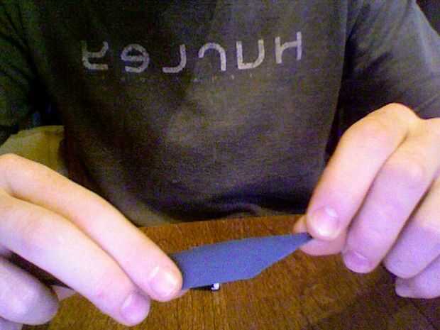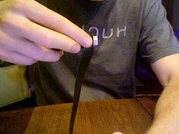 * Tomar la tira de cuero y corte a un ángulo de 15° en un extremo.