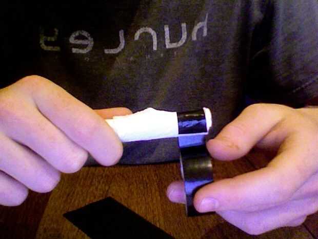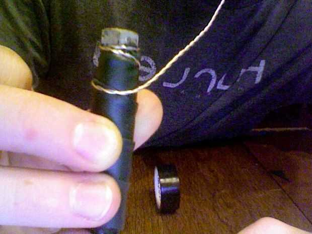 * Mantenga presionado contra el pomo como se muestra en la imagen de abajo luego envolver asegurándose de que tienen cierto traslapo pero no a mucho 1 mm proceder a envolver todo el camino.