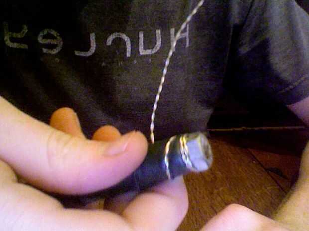 * Cortar aproximadamente una 2.5' sección del alambre y doblarlo por la mitad.