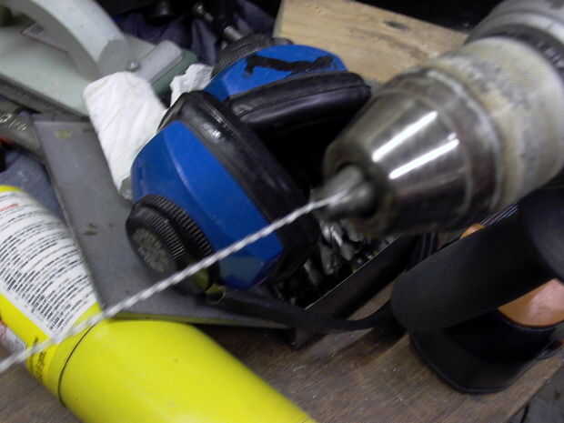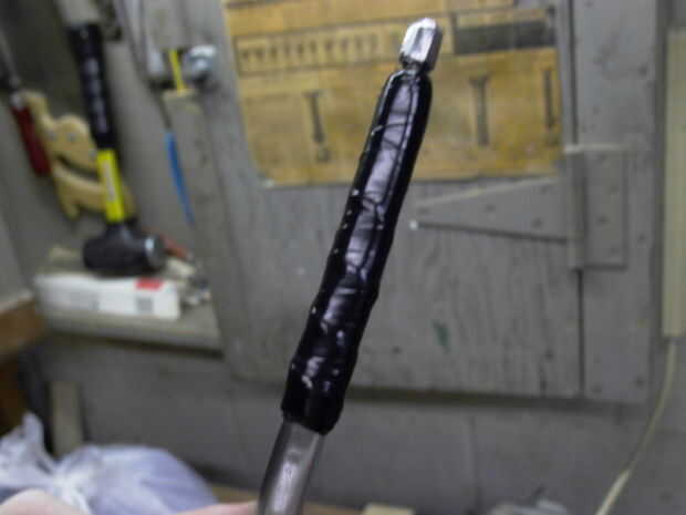 * Luego toma la cinta y envuelve todo y la manija en el suelo.