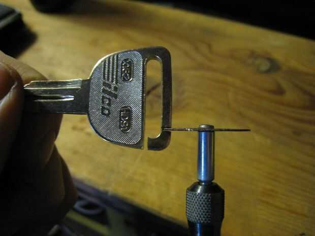 Basado en tu geometría clave, corte el material - un poco a la vez - para formar la llave para la tapa de la botella.