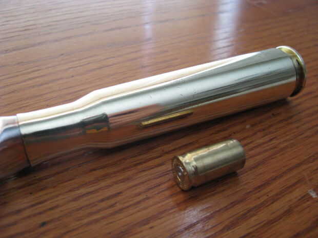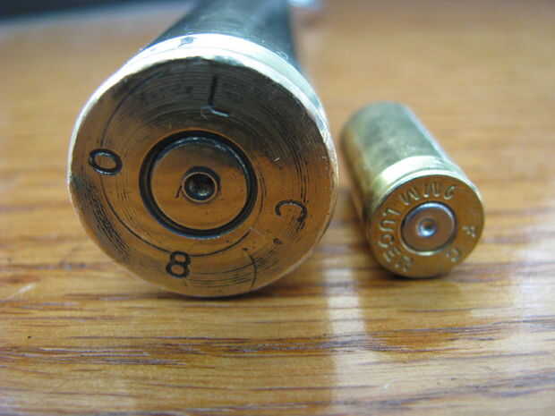 Para tener una idea de cuánto este shell es realmente que tomé fotos de ella junto a un proyectil de arma de mano 9 mm.