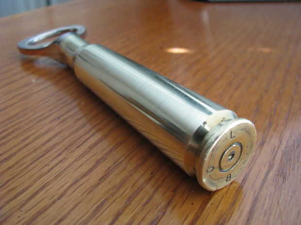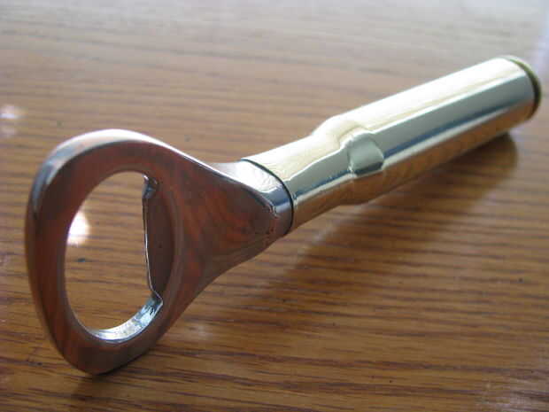 El abridor de vino de la tienda de artesanías por $6.00. Al principio traté de soldar el abrelatas en la cáscara pero comenzó a derretir. A continuación probé el tipo de pegamento que debes usar con la humedad un poco de agua para conseguir que el conjunto. Vino derecha aparte. Finalmente conseguí algunos epoxy de dos componentes pasta. Les mezclar 1:1 y se establece durante la noche. Tenia este material poniendo alrededor de un proyecto pasado pero creo que pagué alrededor de $13,00 para él.