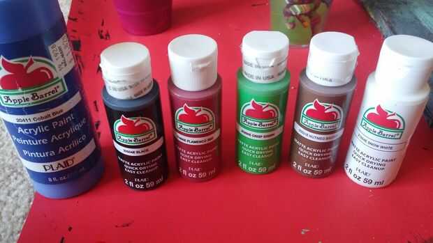 -pintura (utiliza una variedad de marrón, rojo, azul, verde, negro y blanco a la mezcla en un marrón oscuro y un verde para darle un aspecto rústico)