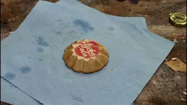 Tomé una imagen de Nuka-Cola me gustaba desde Internet y usa GIMP para revertir la imagen y la escala a una 2" cuadrada.