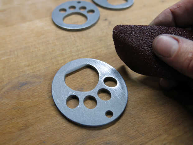 Para terminar las piezas, he intentado una variedad de cosas hasta que tuviera un final que me ha gustado. Me encontré con que chorro de arena y después con un papel de lija áspero les daban un aspecto de acero cepillado agradable. Este look se logra sin una chorreadora de arena, así, sólo tarda más lijado. Este es otro paso que apenas estaba experimentando, para que consejos sobre alternan acabado opciones bienvenida.