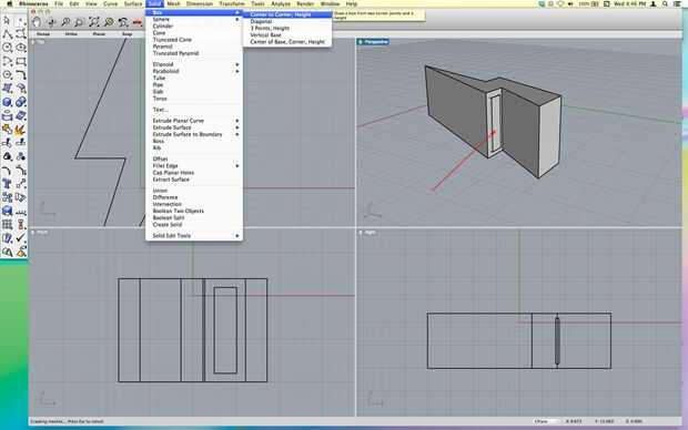 Realizar una operación de sólidos/diferencia como la imagen de abajo. Seleccione Introduzca el perno de la iluminación primera y exitoso, entonces la caja y pulse Intro una vez más.