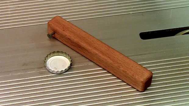 Vi un abridor de botellas muy similar a esta en una tienda y pensé que era genial, pero muy caros y definitivamente no vale la pena comprar--aunque sin duda merece la pena hacer yo mismo.Lo que usted necesita:-Pequeño pedazo de madera (Yo utilicé Ála