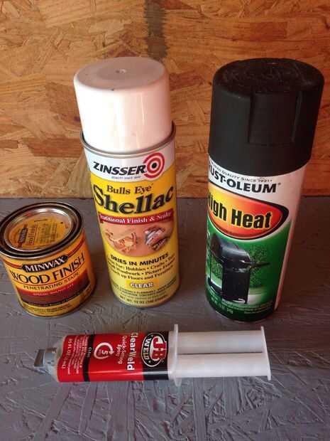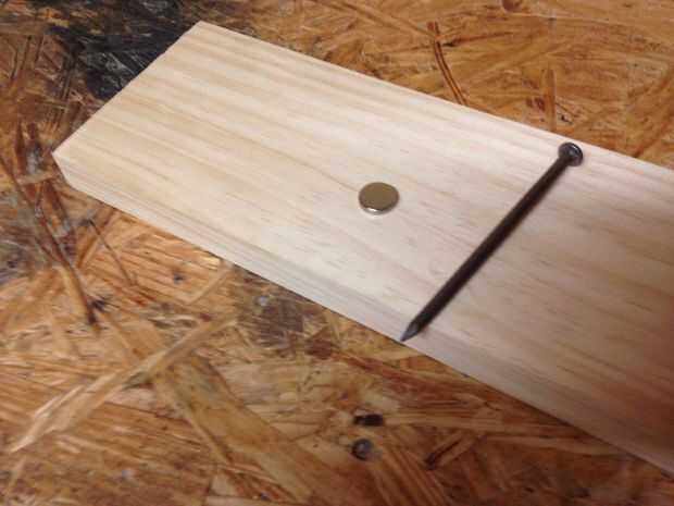 -Chatarra de 1 x 4 -Clavo chatarra, usé una mayor que pude encontrar colocación alrededor -Imanes neodimio -Especial tinte color nogal -Epoxi -Laca acabado -Plantilla -Pintura en aerosol negro
