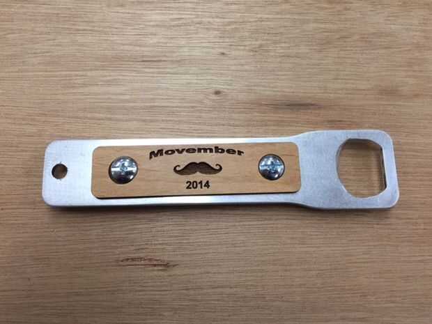 hice mi papá un abrebotellas para su cumpleaños. Tuve un gran pedazo de aluminio fino ahí, así que asierra hacia fuera un rectángulo y luego archivado abajo el metal a la forma correcta. Las líneas fueron hechas usando clips martillados en el alumi