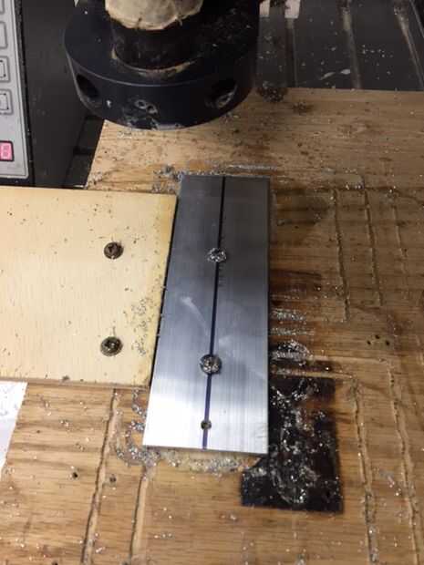 Usé 2 tornillos para sostener el espacio en blanco hacia abajo. He encontrado usando una valla a lo largo de un borde impidió la pieza de trabajo durante el proceso de corte del tormento