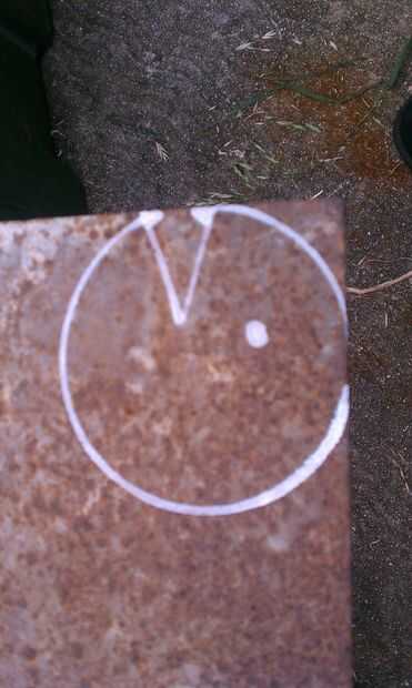 I supended el embudo y alrededor de él con mi marcador. Usé una esquina por lo que podría tener un tiempo más fácil de cortar la forma y al hacerlo me dio un punto de referencia plana poner boca de pacman. PAC-mans boca es poco más una cuña fácilmente dibujado y su ojo es un punto. Así que agregué el boca y el ojo, pero en la boca dejé 2 dientes para ayudar a abrir la botella mejor. I centro de perforado el ojo para mi broca no pregunto.