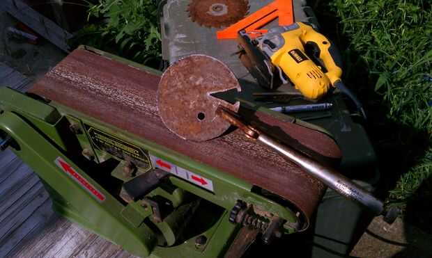 Apretones de tornillo son tus dedos. I fijar al acero pac-man en un par de mordazas de tornillo de banco y procedió a la roya de la arena y vio las marcas en el metal con una lijadora de banda. Asegúrese de que el metal se calienta y ten cuidado con las rebabas. Poco metal, las astillas son más fáciles de encontrar por el dolor que causan en el pulgar, tener mucho cuidado. No tratando de hacer el metal shiney apenas golpean apagado las cosas sueltas.