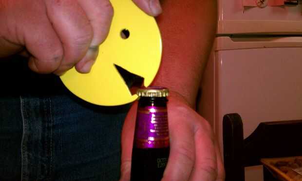 Después de que la pintura se había secado completamente, pruébalo. Todos los había en la casa con una tapa de la botella era una botella de baya weiss de Leinenkugel que como me enteré después de que el hecho es un casquillo de la torcedura. Eso no impidió que Pac-man aunque. Los dientes eran desafiantemente necesarias para permitir que los abrelatas de botella a trabajar.