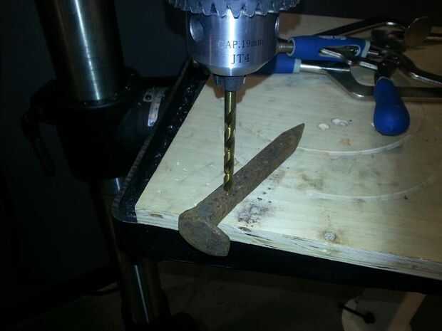 También, tenga en cuenta la velocidad del taladro. Si eres afortunado de tener acceso a un dial control multi-velocidad taladro, gran. Pero probablemente es más probable que usted tendrá acceso a una prensa del taladro que emplea poleas reductor para alterar el cociente del engranaje de la máquina. Aunque ferrocarril espigas tienden a encontrarse hace de lo que comúnmente se considera acero de carbon baja a media (25 a 40 puntos, es decir, 0.20-0.40%, carbono), es todavía inteligente mantener la RPM baja. Yo prefiero usar la velocidad más baja, tal y como haríamos con aceros de alto carbono. Hago esto por una serie de razones.