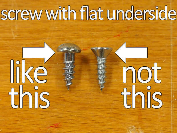 Utilicé los tornillos de cabeza plana 1/2" domo, pero funciona cualquier tornillo con un superficie inferior plano.
