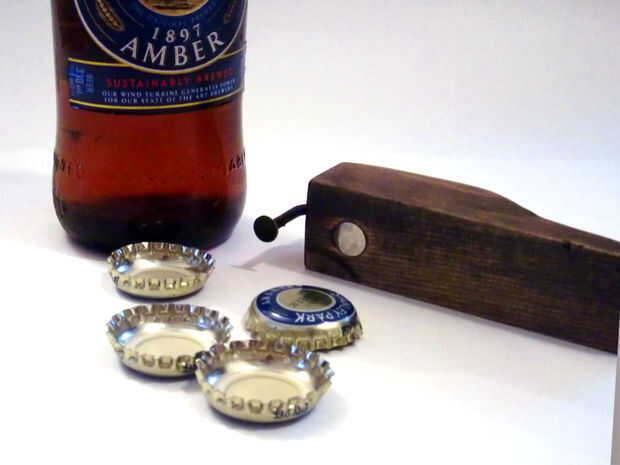 Este abrebotellas magnético utiliza un clavo doblado para sacar de la tapa de la botella de la bebida, y el imán mantiene la tapa de volando después de la apertura. Otro imán en el lado permite pegar su abridor en la nevera para de fácil acceso.