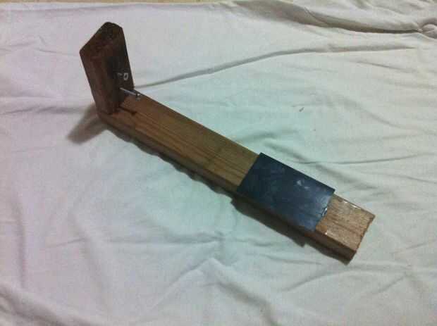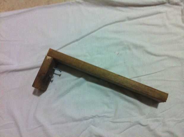 Conecte la madera pequeña a la grande en un ángulo de 90 grados usando los dos tornillos largos.