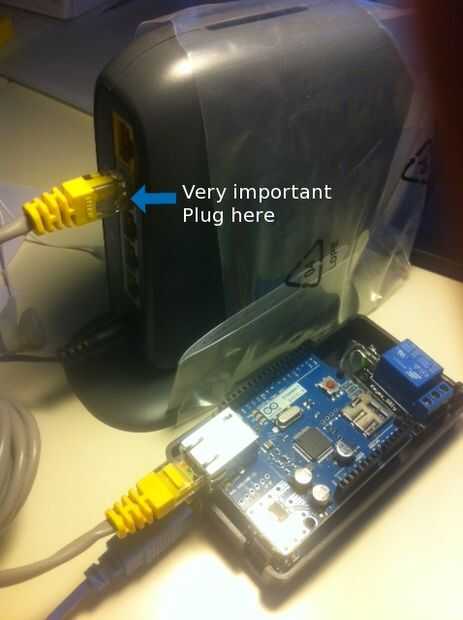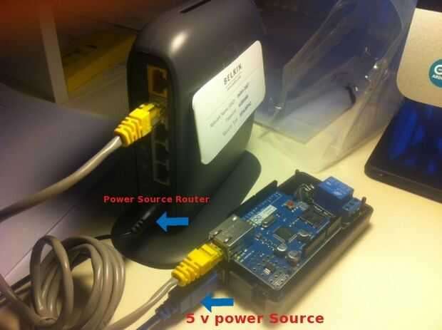 Por lo tanto, ahora tenemos a continuación el receptor iwup. Relé, tablero Arduino UNO & Shield Ethernet y Belkin Router.