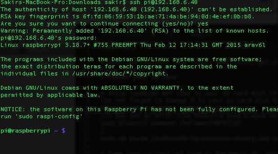 8. Conecte al RPi. Cambiar la dirección IP con la que ha encontrado en el paso anterior.