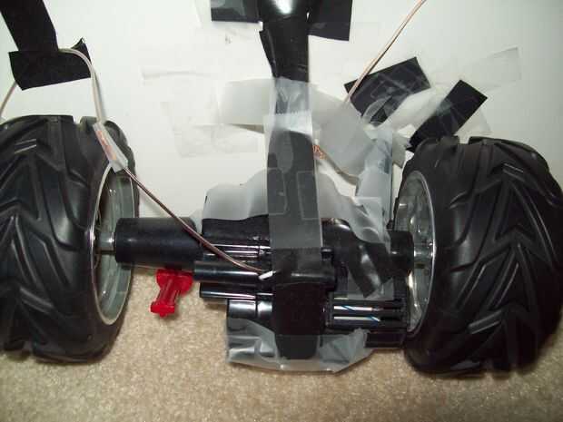 Para sujetar el motor, he usado cinta aislante. Puse cinta en la puerta sobre el motor y luego en del motor y debajo de la puerta. Lo hice dos veces porque quería ser fuerte. También necesita a un espaciador de algunos medio de clase la puerta y el motor para que se pueda fácilmente introducirlo abierto sin las ruedas bloqueo contra la puerta. (Esto es algo confuso hasta que realmente le sucede a usted). Usé un muerto AA batería porque estaba tendido en el piso de mi habitación y era del tamaño adecuado. Este separador en lugar de la parte superior y la parte inferior de la cinta y se vuelven locos con la cinta adhesiva para que no caiga todo el tiempo como el mío lo hizo, que era muy molesto.