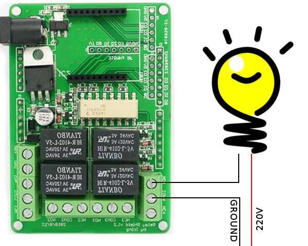 Cada itinerario está equipado con 3 lámparas de 220V simple. Los interruptores se encuentran fuera de nuestras respectivas casas, junto al grupo donde he puesto la placa Arduino. Vamos a "hackear" los interruptores y conectarlos en los sockets del escudo de relé 1 y 2. Puede utilizar la imagen adjunta como referencia. Con algunas adiciones del bosquejo anterior ahora soy capaz de encender las luces de cada camino y liberar mi puerta simplemente mediante el uso de mi tarjeta única!