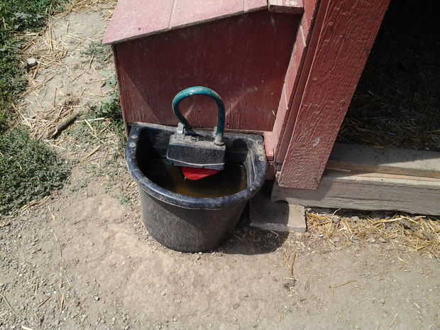 Mi solución a este problema era conectar el barril de lluvia con una manguera de jardín a un flotador de dispositivo de la válvula montado en el canal. El barril de lluvia es en el gallinero y obtiene su agua de una bajante en el gallinero. Simplemente ejecuto una manguera de la manguera en el tonel de lluvia para el canal que está sentado fuera del gallinero. Puesto que se dejan los pollos sueltos en casi todos los días, pudieran llegar al canal así como las cabras podrían. También mantenía a un abrevadero dentro de la cooperativa para los días cuando no eran dejaron hacia fuera. Odiaba tener que limpiar y llenar uno en el tonel para eventualmente configurar un segundo bebedero flotador dentro de la ejecución usando un splitter conectado a la manguera.