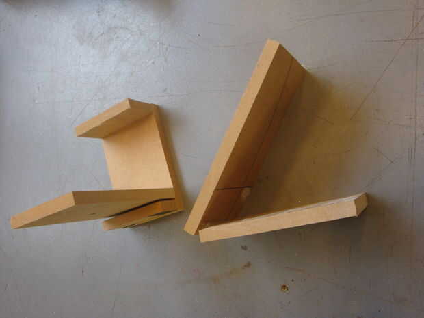 Sierra de la madera en el tamaño correcto. Unir las piezas. Dibujar el ángulo recto en la madera y papel de lija hasta correcta.